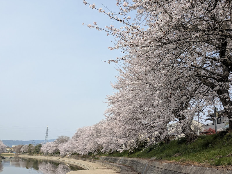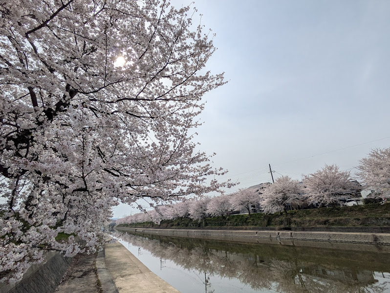 前川堤の桜並木は、桜の名所として有名な伏見の宇治川派流、八幡の背割堤が周辺にあり、その狭間に位置する、知る人ぞ知る桜の穴場スポット。