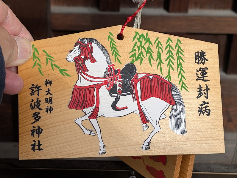 絵馬には白馬の神馬とかつての神号「柳大明神」にちなみ、柳が描かれています。