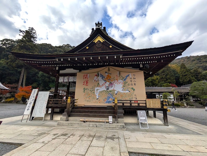 松尾大社(まつのおたいしゃ)では、令和8年(2026年)の干支 「丙午(ひのえうま)」を描いた恒例の大絵馬を、境内の拝殿(東面)に掲げています。