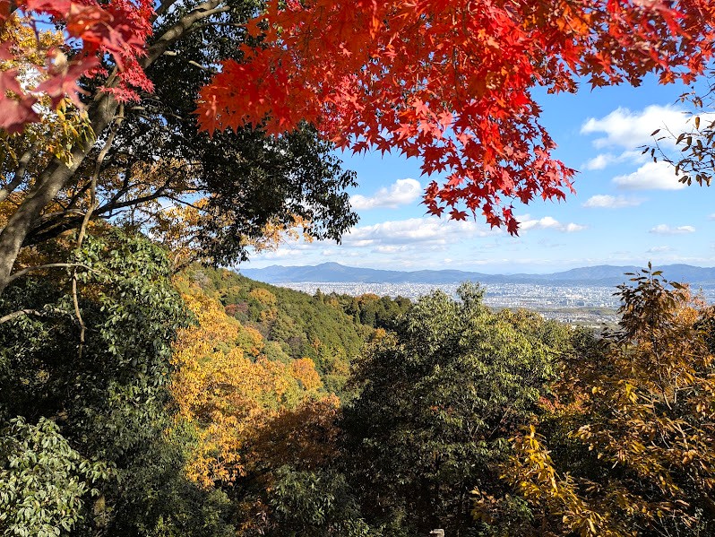 さらに、境内の奥にある見晴台(長嘯亭)からは、晴れた日には京都市街や東山連峰、比叡山の絶景が一望。