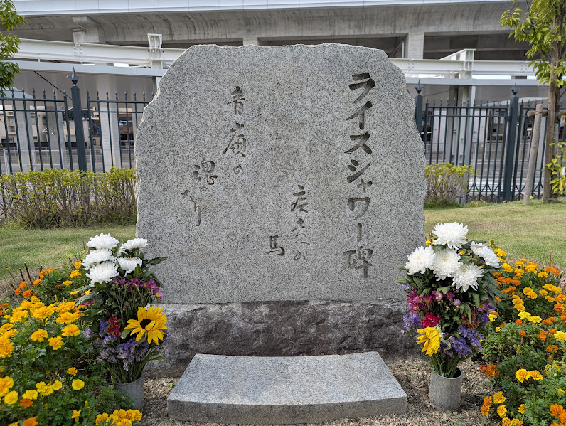 京都競馬場には慰霊碑が建立され、今なおライスシャワーを愛するファンから供花が届けられ、ライスシャワーは最も輝いた淀の地で安らかに眠っています。
