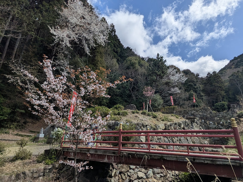 また、本堂に向かって左側の龍神滝へと続く渓流や厄除橋周辺にも桜が点在しています。