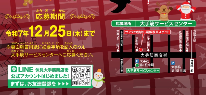 ※応募用紙は12月4日(木)より伏見大手筋商店街内A型看板もしくはサービスセンターにて配布