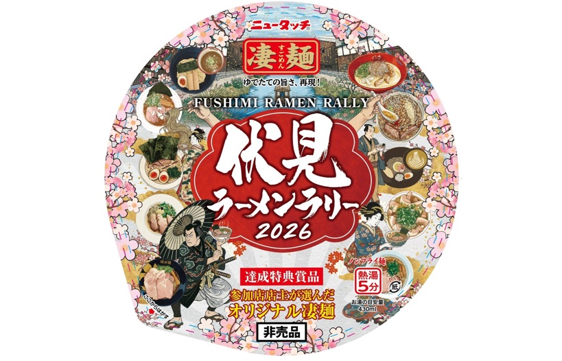 今回のイベントは、2025年11月17日(月)に新発売した、伏見のご当地ラーメン「ニュータッチ凄麺 京都伏見鶏白湯ラーメン」のヤマダイ株式会社、京阪電車とのスペシャルコラボで実施します。