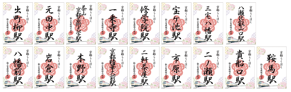 ※元田中駅、茶山・京都芸術大学駅、一乗寺駅、修学院、宝ケ池駅、三宅八幡駅、八瀬比叡山口駅の7駅セット