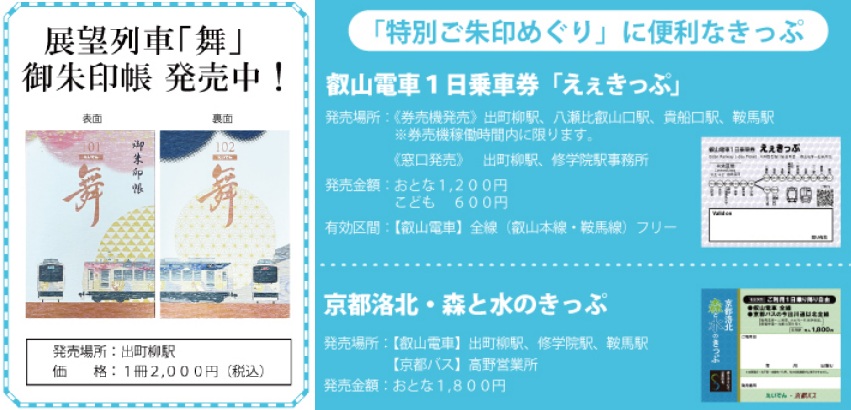 また、叡山電車の出町柳駅、修学院駅、貴船口駅、鞍馬駅の4駅にて乗車記念として同企画の限定台紙を使用したご朱印風「来訪記念印」を枚数限定で発売します。