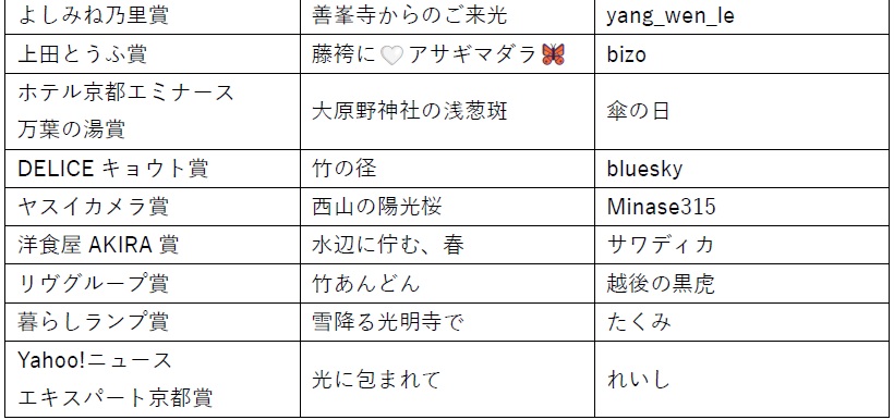 全1,542点の、京都西山の魅力あふれる素敵な作品のご応募をいただきました。京都写真家協会による厳正な審査の結果、京都西山の各エリア賞および、とっておきの京都賞をはじめとした各賞の入賞作品、合計40作品が決定しました。